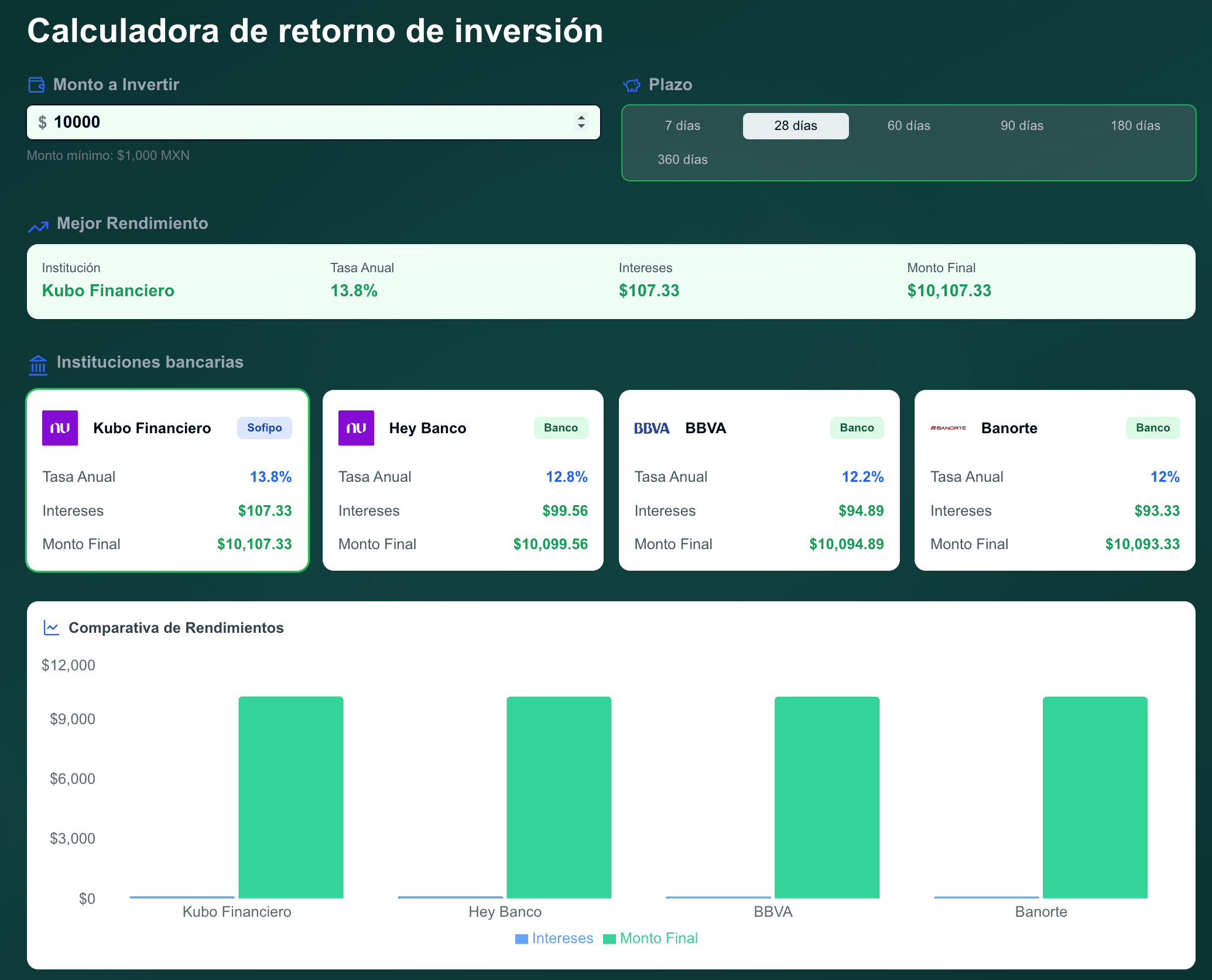 Utiliza nuestro comparador para encontrar los mejores productos de inversión con la mejor tasa de interés y rendimiento para tus ahorros.